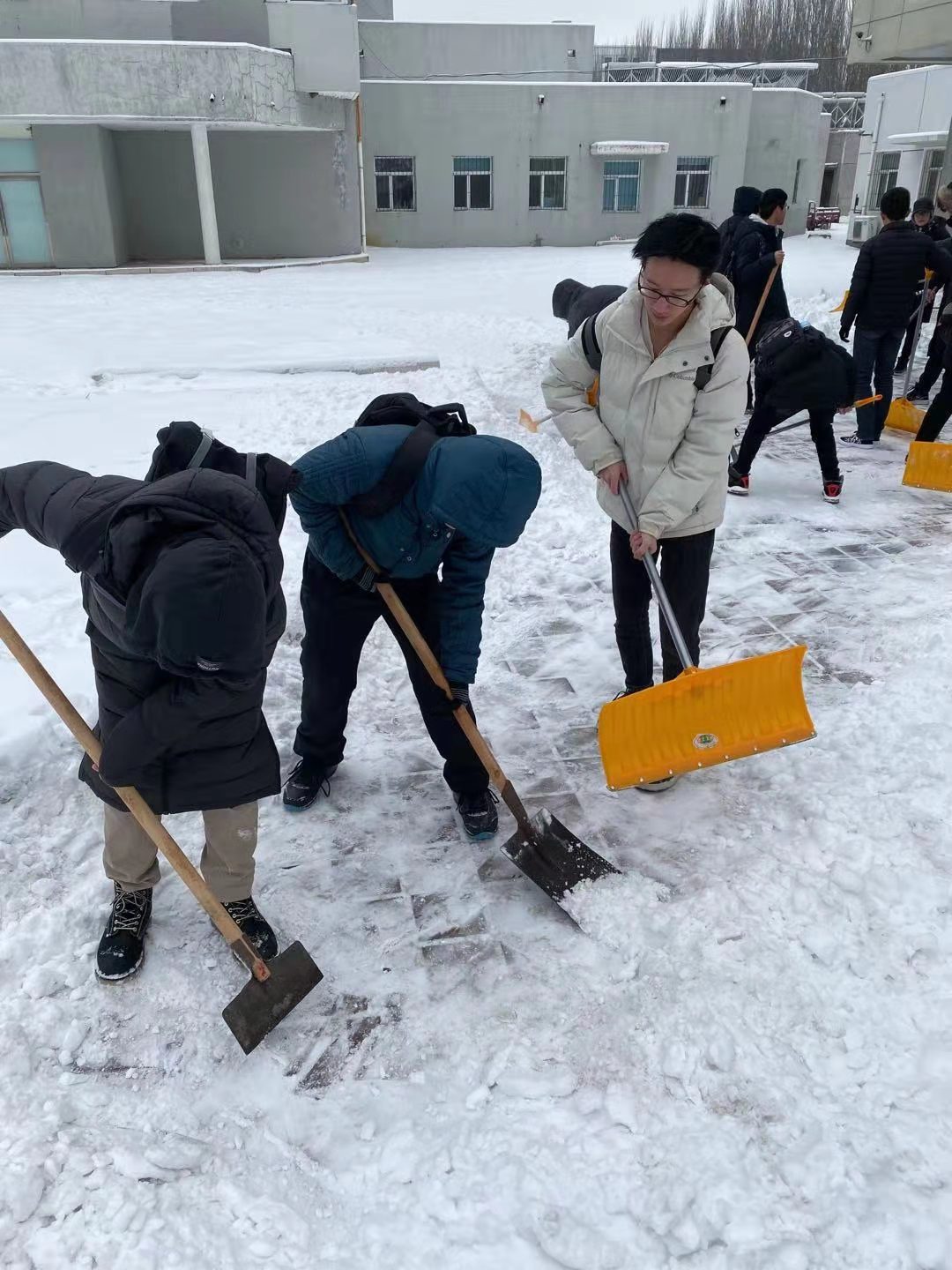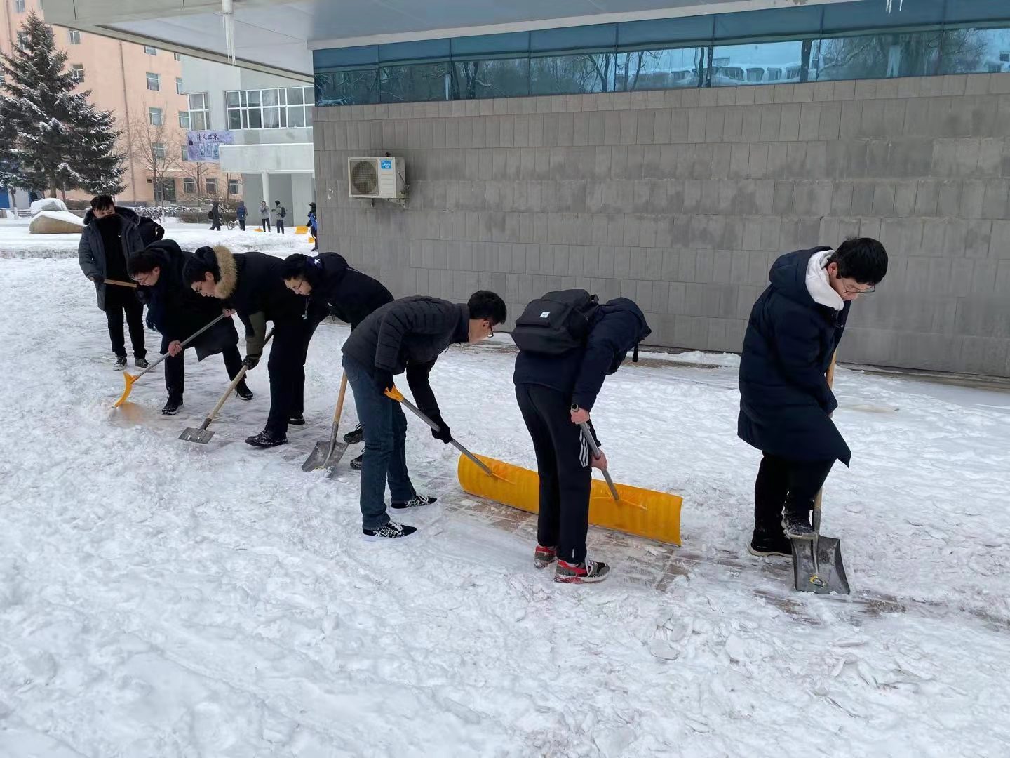 正值降溫,今天同學(xué)們感受到了這個冬天以來最低的氣溫,冰雪也凝結(jié)得十分堅硬,但同學(xué)們的熱情卻絲毫沒有減退,在入黨積極分子們的帶領(lǐng)下,經(jīng)過一個半小時的團(tuán)結(jié)協(xié)作,大家將博物館門前的道路清理得干干凈凈。行人踏上不再被積雪占據(jù)的道路,腳步變得輕快,不再被泥濘所困擾,同學(xué)們看到后都感覺十分欣慰。清雪結(jié)束后,同學(xué)們又發(fā)揮自己的創(chuàng)造力在博物館門前堆起一個小雪人,記錄下用勞動服務(wù)大眾所收獲的快樂與友誼。