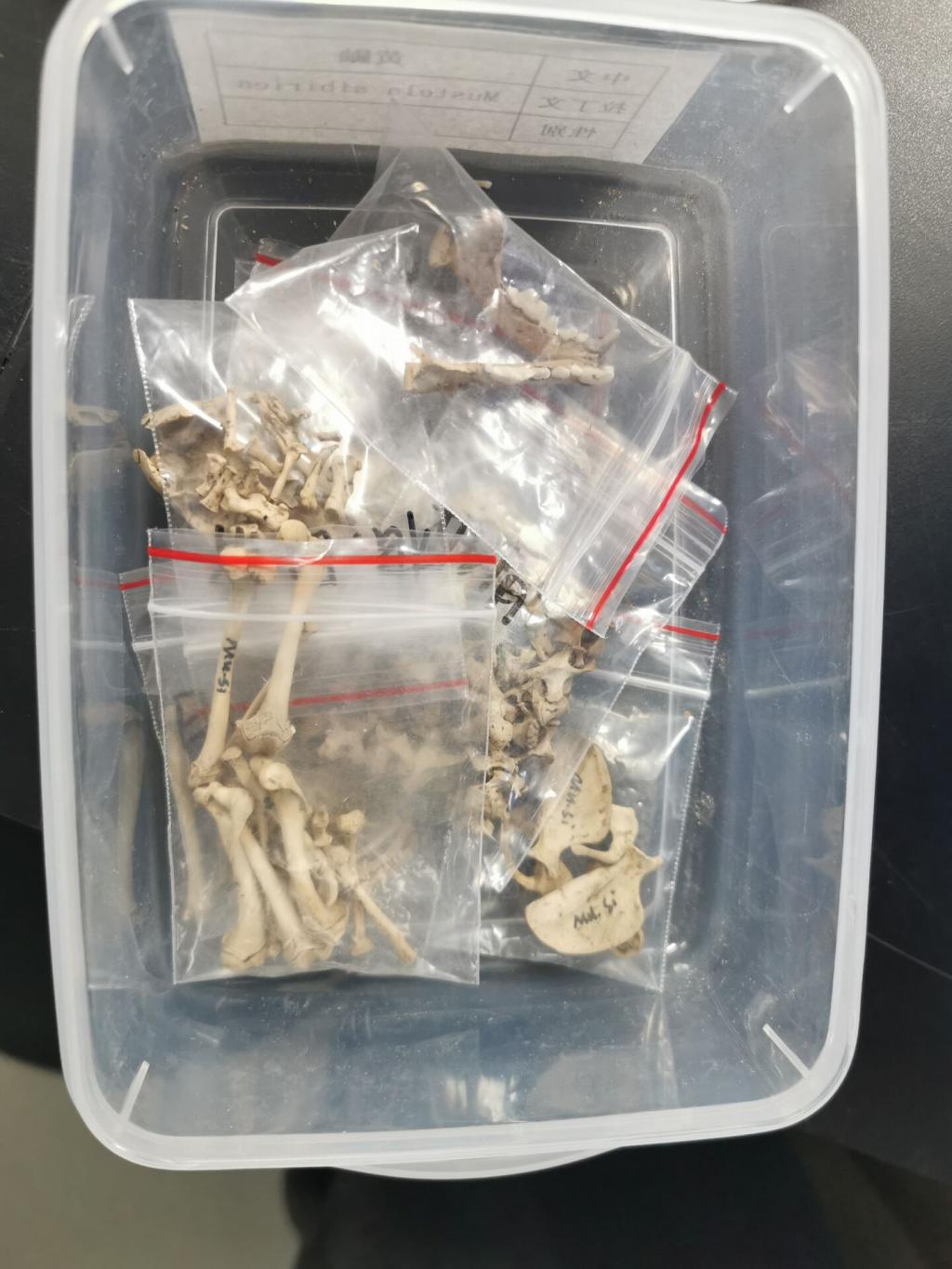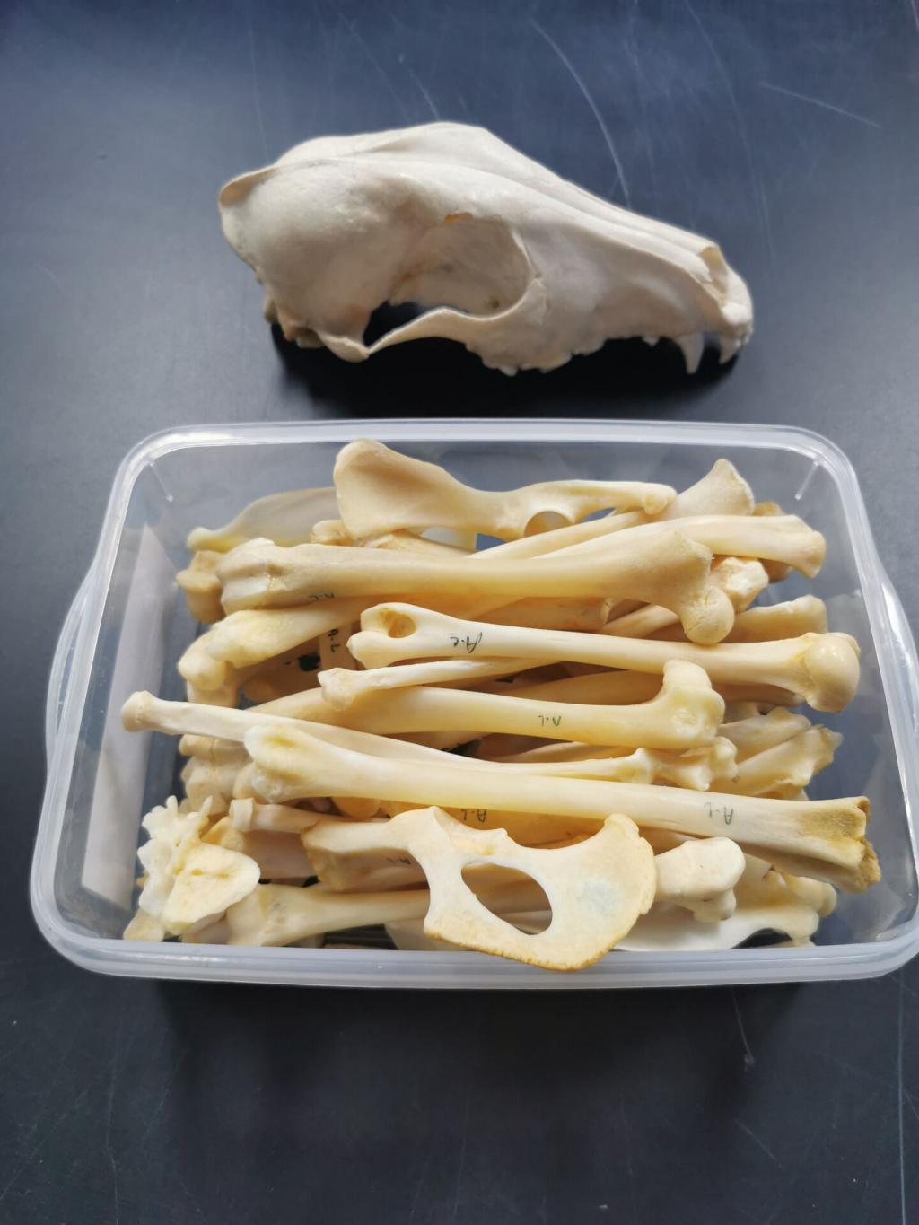 對(duì)于動(dòng)物考古學(xué)來(lái)說(shuō),實(shí)踐方能出真知,對(duì)動(dòng)物考古學(xué)的熟練把握必須建立在熟識(shí)并細(xì)致觀察各類(lèi)動(dòng)物骨骼標(biāo)本的基礎(chǔ)上。因此,在理論知識(shí)部分講授完畢后,王春雪老師依托實(shí)驗(yàn)室中藏有的豐富動(dòng)物骨骼材料,帶領(lǐng)小組全體同學(xué)進(jìn)行了標(biāo)本的觀察和實(shí)際接觸,其中不乏熊科動(dòng)物頭骨與亞洲黑熊肢骨,無(wú)尾目的林蛙骨骼,犬科的狼與雪狐骨骼,鼬科的黃鼬骨骼,鴉科的兩個(gè)松鴉個(gè)體的骨骼及猛犸象與披毛犀的臼齒化石等珍貴標(biāo)本,在同學(xué)們進(jìn)行仔細(xì)觀察和欣賞的過(guò)程中,王老師利用一批食草動(dòng)物牙齒標(biāo)本向大家講解了不同食草動(dòng)物種屬的臼齒區(qū)別及同一物種上下臼齒的區(qū)別技巧。