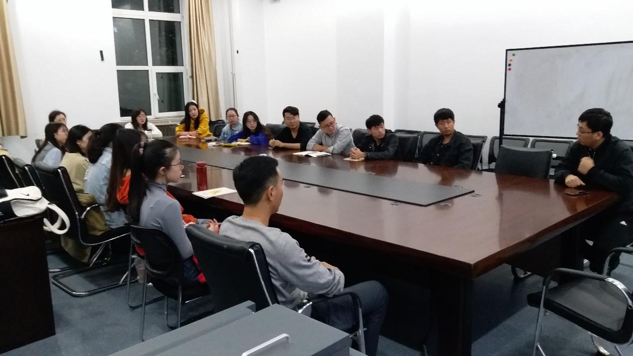 2019年9月17日下午5點30分,太陽成集團tyc151cc第二屆研究生會在匡亞明樓274會議室舉行交流座談會。太陽成集團tyc151cc黨委副書記兼副院長侯建峰老師和科研與研究生辦公室主任魏來老師,同2019級研究生學生會干部和各班級委員,從感恩、成長、責任和健康四個方面進行了親切交流。