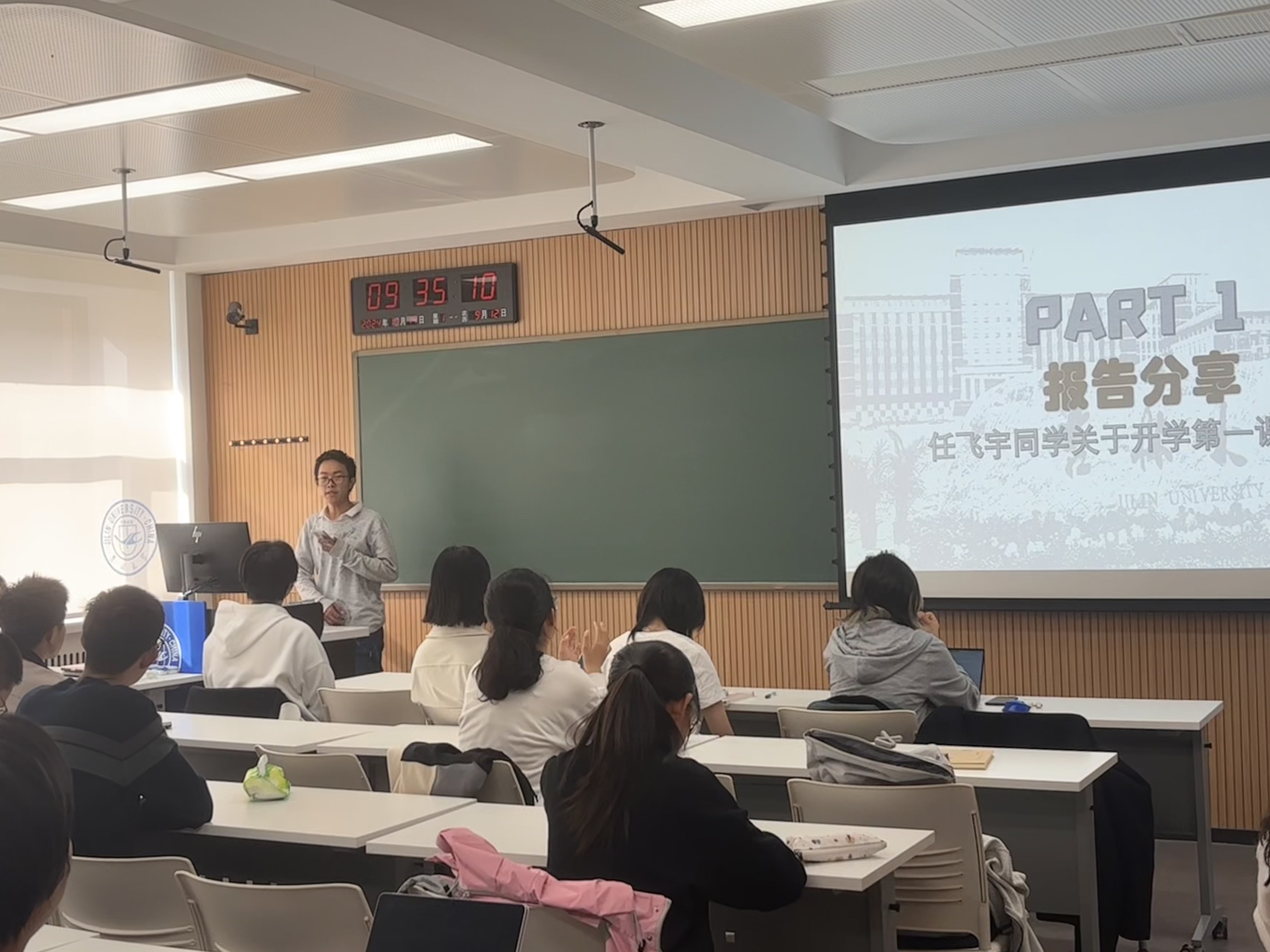 報告分享環(huán)節(jié),任飛宇同學(xué)向同學(xué)們做了關(guān)于“新生第一課”內(nèi)容分享。任飛宇同學(xué)作為太陽成集團tyc151cc2024級1班的新生代表,參加了吉林大學(xué)2024新生第一課,受益匪淺。他從吉林大學(xué)的建校歷程、流傳至今的優(yōu)良傳統(tǒng)、新時代吉林大學(xué)學(xué)子的使命和擔當?shù)确矫孢M行匯報分享,并向同學(xué)們轉(zhuǎn)達了姜書記對新生的深情寄語。在座的各位同學(xué)認真聆聽和學(xué)習(xí)任飛宇同學(xué)的分享,收獲頗豐。