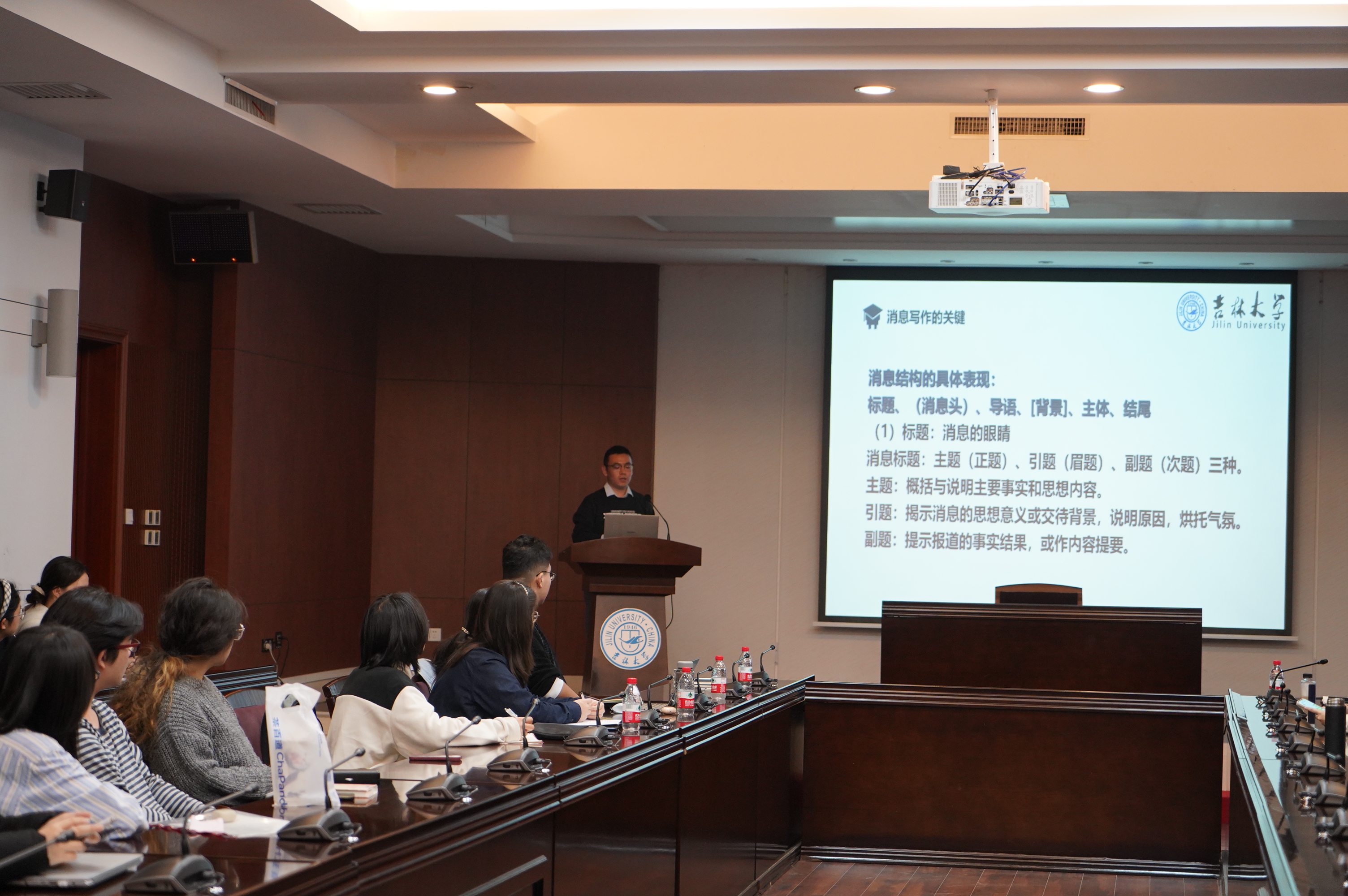 在新聞寫作專題培訓(xùn)環(huán)節(jié),馬克思主義學(xué)院2023級博士研究生蘆猛受邀來到現(xiàn)場,為大家傾情指導(dǎo)通訊稿寫作要點,以形象生動的案例、通俗易懂的言語揭示了消息與通訊寫作的特點與區(qū)別,介紹了一些新聞寫作技巧,分享校園新聞采寫的相關(guān)經(jīng)驗。此外,蘆猛注意到新聞寫作中的細節(jié)問題,并給予相應(yīng)建議,提醒同學(xué)們注意新聞規(guī)范。