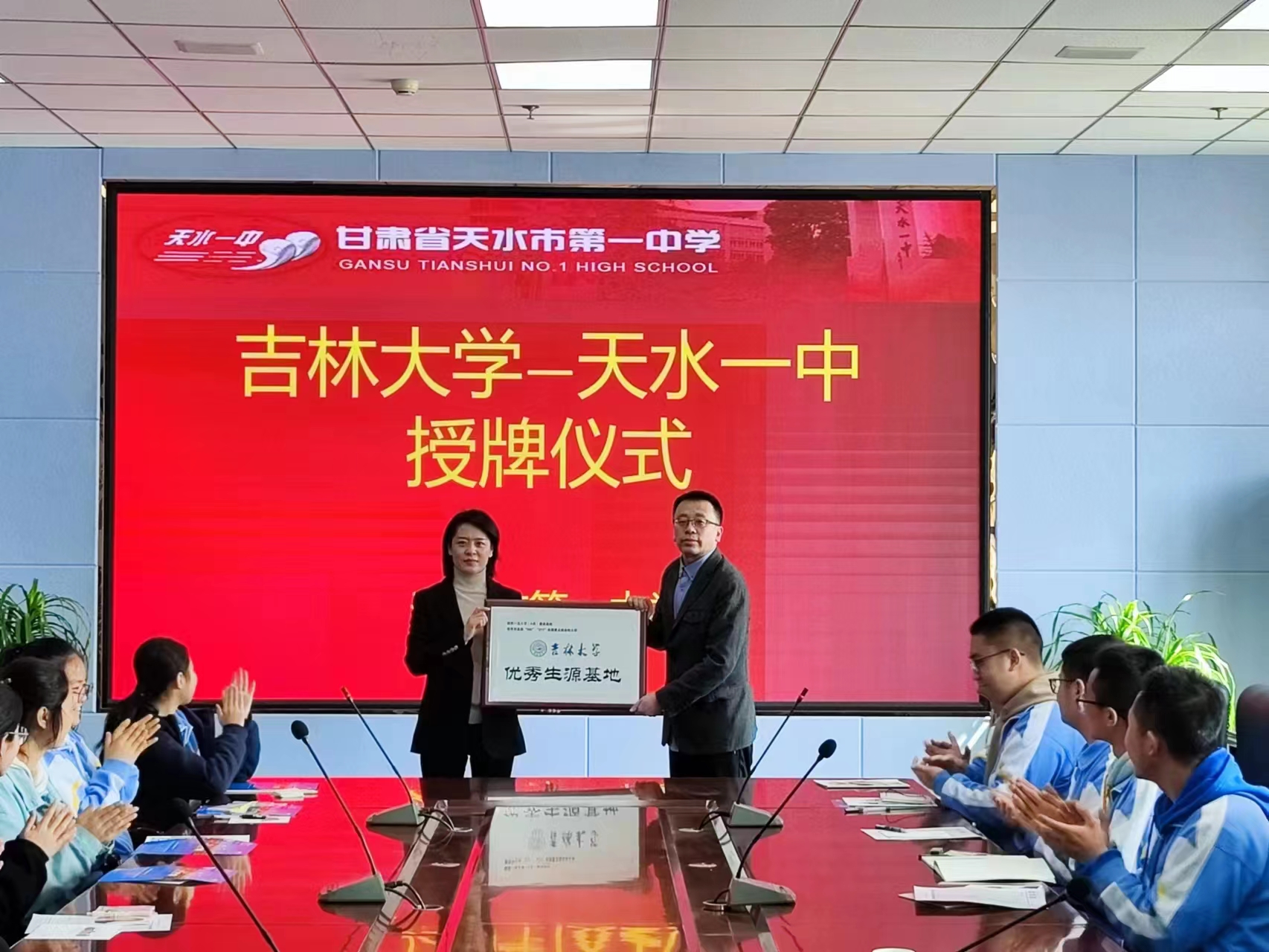 4月25日,吉林大學(xué)招生宣講團(tuán)先后走進(jìn)蘭州市天水市第一中學(xué)、第九中學(xué)進(jìn)行招生宣傳工作。25日上午,在天水一中會議室,宣講團(tuán)一行與校長助理張小梅、工會主席姚啟文、教務(wù)科主任韓文亮進(jìn)行座談。宣講團(tuán)成員侯建峰副書記代表吉林大學(xué)對天水一中進(jìn)行“優(yōu)秀生源基地”授牌并合影留念。隨后,宣講團(tuán)面向高三重點(diǎn)班學(xué)生進(jìn)行主題宣講,宣傳材料和紀(jì)念品發(fā)放,與學(xué)生面對面展開深入交流。25日下午,在天水九中會議室,宣講團(tuán)與天水市第...