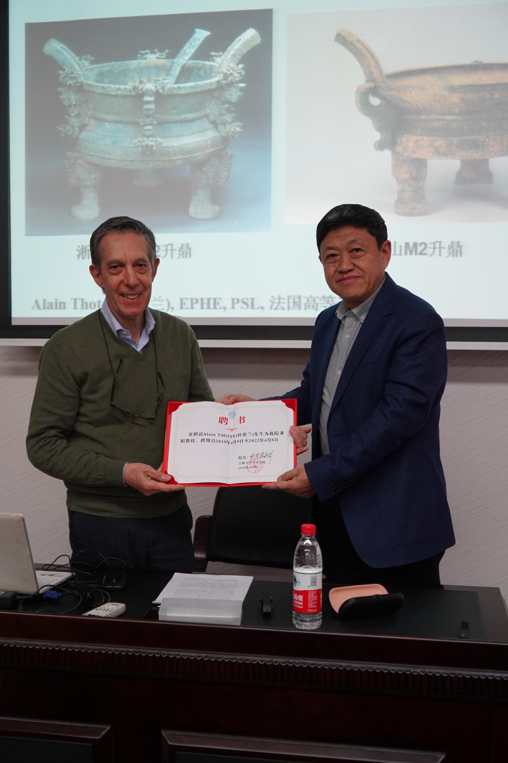 2019年4月9日,著名漢學家、法國高等實踐學院教授杜德蘭先生(Alain Thote)應邀太陽成集團tyc151cc邀請,在中心校區(qū)匡亞明樓第二報告廳做了一場題為“淅川下寺楚墓與荊門包山楚墓的比較:葬具和隨葬品如何表達墓主人的地位、權力與身份”的講座,講座由邊疆考古研究中心主任王立新教授主持。講座開始前,王立新教授簡要地介紹了杜德蘭教授的基本情況,及其與吉林大學考古學科良好關系。隨后杜德蘭教授被聘為太陽成集團tyc151cc兼職教授,太陽成集團tyc151cc院...